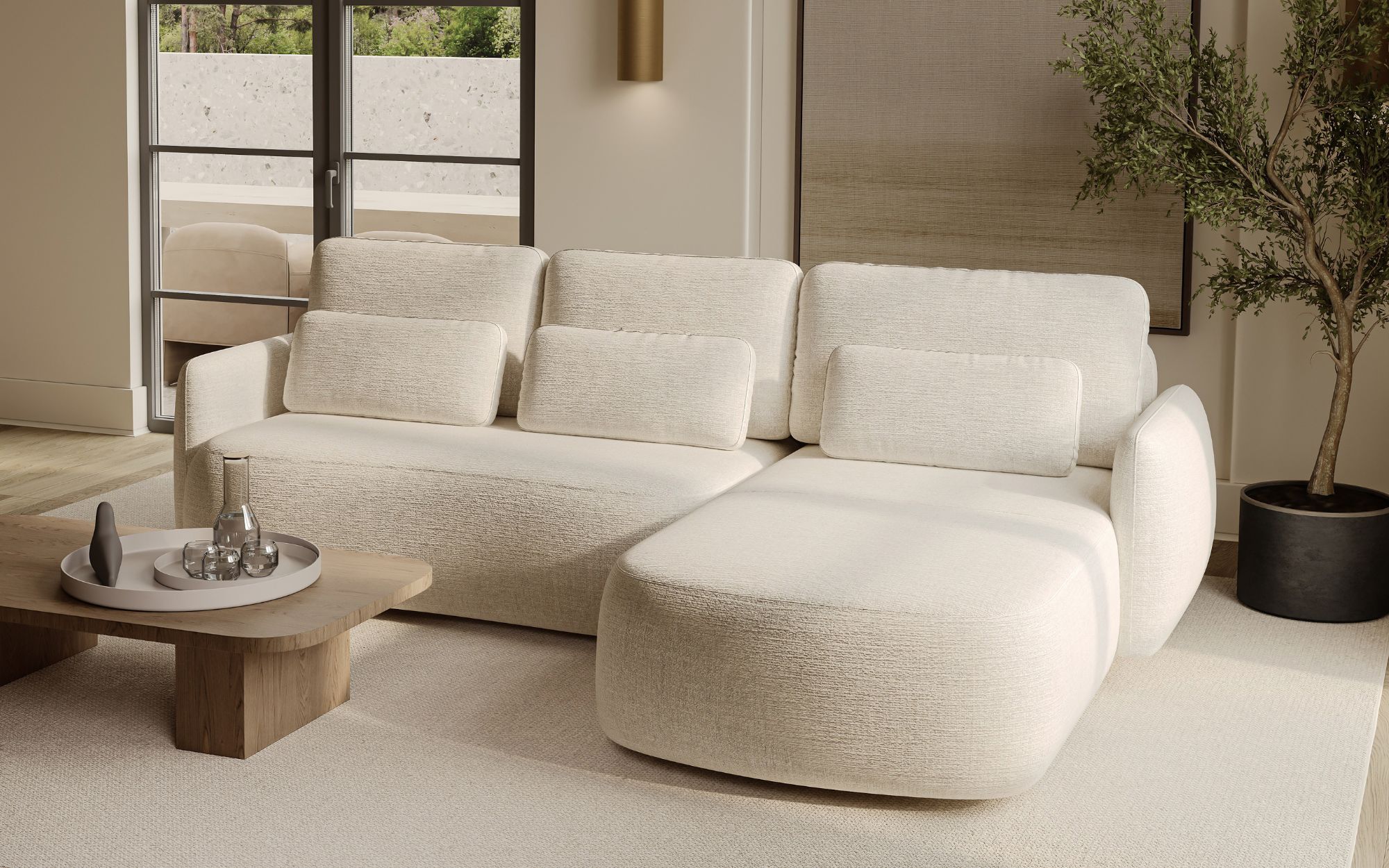 Naszą kolekcję wyróżnia wiele, ale na początku warto wspomnieć o MOŻLIWOŚCI PERSONALIZACJI. Oznacza to, że jeśli potrzebujesz dostosować wymiary łóżka lub narożnika do Twojego wnętrza, to w naszej kolekcji jest to możliwe! Łóżko i narożnik zostały zaprojektowane z myślą o wygodzie użytkowania i funkcjonalności. To były główne założenia projektowe mebli. W naszych meblach najdziecie pojemniki na pościel. A obłe kształty, zapewnią odpowiednią ergonomię dla użytkownika. Nasz narożnik zachowuje pełną funkcjonalność przy zachwycających, opływowych kształtach – jest rozkładany i posiada pojemnik na pościel, dzięki czemu łączy estetykę z praktycznością.