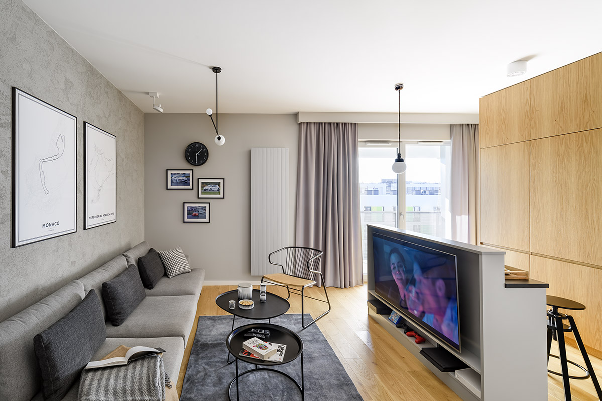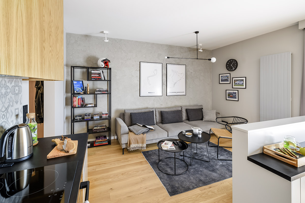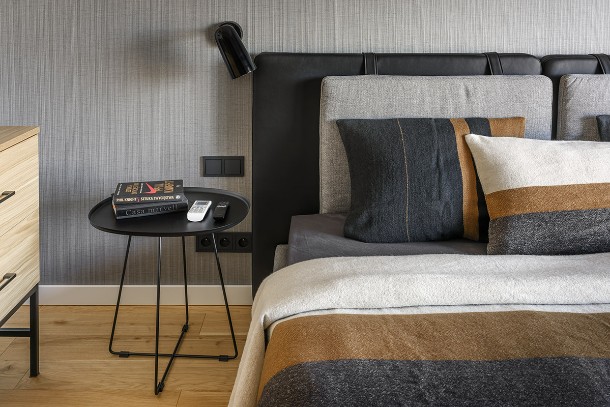 Do projektu autorstwa Marty Kwiecień mieliśmy przyjemność wykonać sofę oraz łóżko, które doskonale wpisują się w estetykę nowoczesnego apartamentu na Żoliborzu. To przestrzeń stworzona z myślą o współczesnej rodzinie – miejsce, gdzie funkcjonalność harmonijnie łączy się z pięknem. W strefie dziennej, gdzie kuchnia płynnie łączy się z salonem, nasza sofa stanowi serce wspólnych chwil – komfortowa, elegancka, idealnie komponująca się z ciepłem drewna i subtelnymi odcieniami szarości. W sypialni natomiast zaprojektowane przez nas łóżko zapewnia nie tylko wygodę, ale także estetykę, która sprzyja relaksowi. Każdy detal tej realizacji został dopracowany z myślą o codziennym komforcie mieszkańców, podkreślając unikalny charakter wnętrza.