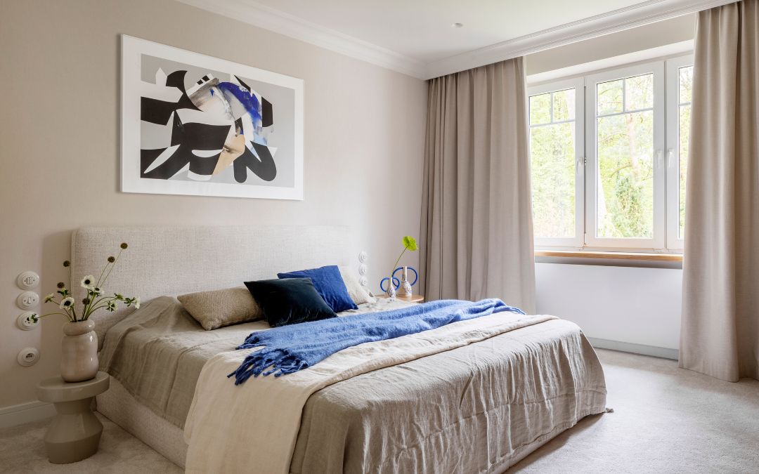 W sercu Konstancina-Jeziornej powstał wyjątkowy projekt biura architektonicznego Kamińska Stańczak, który łączy nowoczesność z ponadczasową elegancją. Realizacja narożnika oraz tapicerowanego łóżka na specjalne zamówienie stanowi doskonały przykład harmonijnego połączenia estetyki i funkcjonalności. Narożnik, wykonany w stonowanych kolorach, stanowi idealne dopełnienie przestrzeni, tworząc przytulne miejsce do relaksu. Jego minimalistyczny design oraz wysokiej jakości materiały wpływają na komfort użytkowania, a zarazem wprowadzają do wnętrza poczucie lekkości i spokoju. Ciepłe, jasne odcienie mebli dodatkowo podkreślają nowoczesny charakter domu, zachowując przy tym minimalistyczny styl, który tak doskonale wpisuje się w współczesne aranżacje. Sypialnia emanuje spokojem i przytulnością, a jasna kolorystyka mebli harmonizuje z resztą aranżacji. Miękki zagłówek nie tylko wprowadza ciepło i komfort, ale również nadaje przestrzeni wyrafinowanego charakteru. Stonowana paleta barw, subtelne przeszycia i perfekcyjne wykończenia podkreślają jakość wykonania oraz dbałość o detale, które w takich projektach są absolutnie kluczowe. Serdecznie dziękujemy za zaufanie i możliwość współpracy przy realizacji tego wyjątkowego projektu.